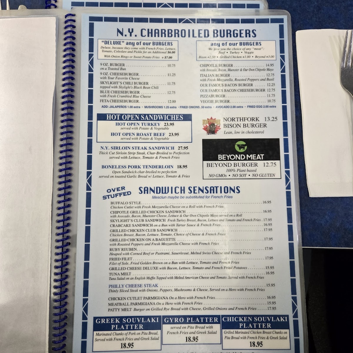 But don’t just take our word for it. Skylight Diner has captured the hearts (and appetites) of many who have ventured through its doors. Customer Amanda Taylor raves about their extensive menu and expedient service, praising a busy Sunday visit where her family's varied order arrived in record time—a testament to the kitchen's efficiency. John Prickett shares a stellar experience, highlighting the perfect execution of his NY strip and eggs. He notes the quality of the steak, cooked just right, which is impressive in the diner landscape.
